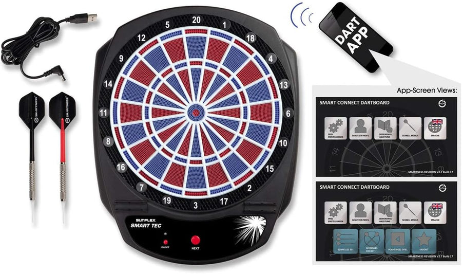 sunflex Dartscheibe Smart Tec - elektronische Dartscheibe + 6 Pfeile und Ersatzspitzen | kabellose V
