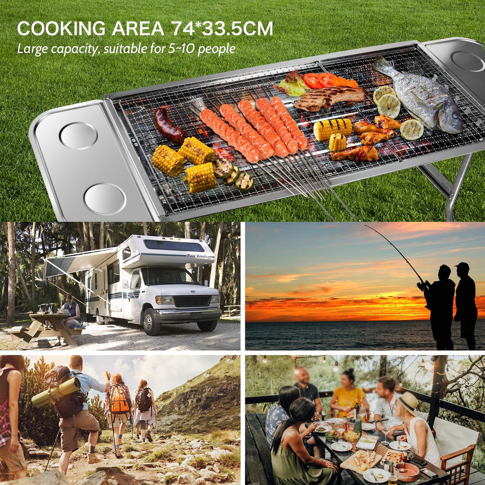 SunJas Edelstahl Klappgrill Holzkohlegrill, BBQ Grill Doppel Grillfläche 34x21.5 cm, Tischgrill Camp