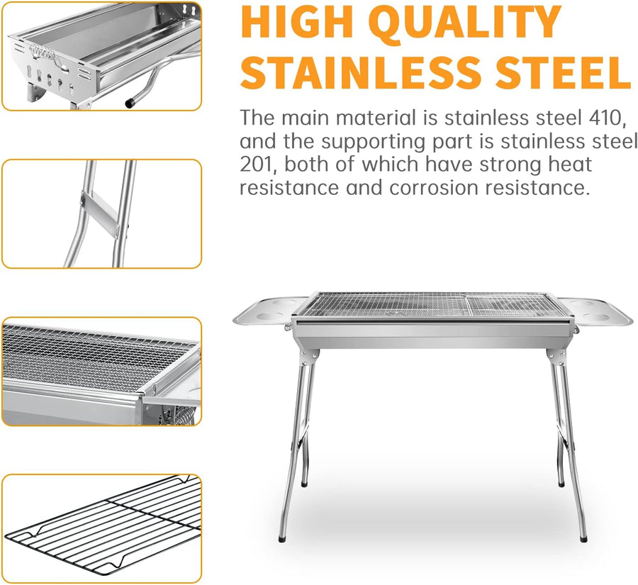 Sunjas Edelstahl Holzkohlegrill, Klappgrill Outdoor BBQ Grills, Portable Campinggrill, Standgrilll,