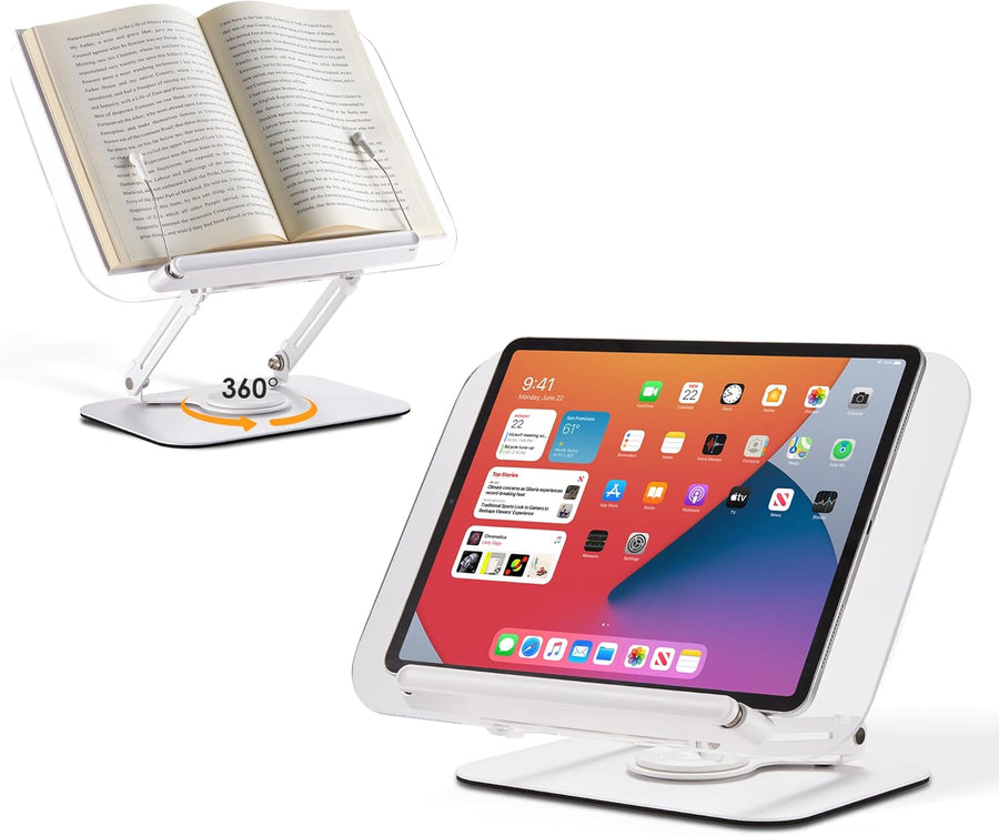 SupeDesk Buchständer, verstellbarer Buchhalter Leseständer mit 360° drehbarer Aluminiumlegierungsbas
