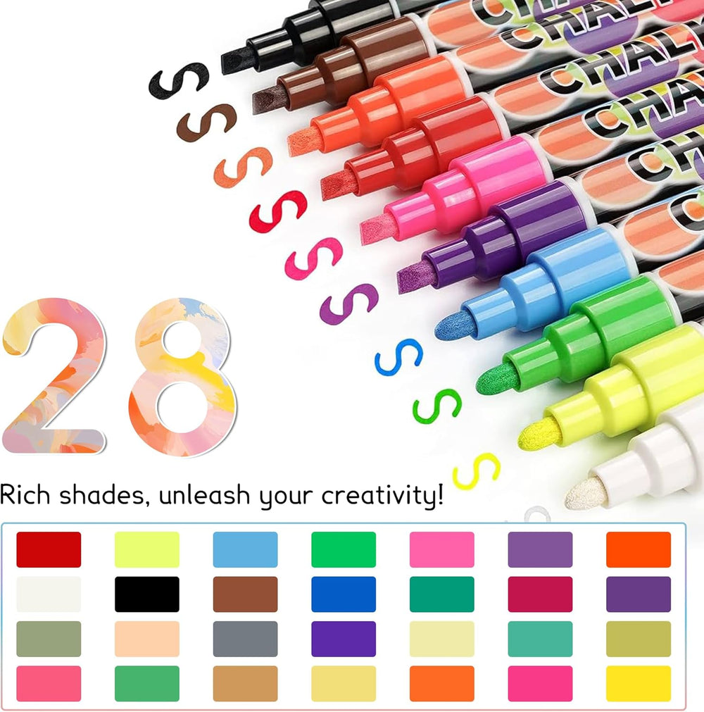 SUPERSUN 28 Kreidestifte für Tafel Abwaschbar & Kinder Kreidemarker Fenster 6mm mit Reversible Spitz