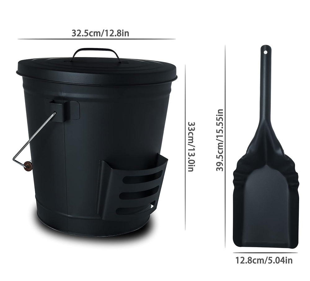 Supremery Ascheeimer mit Deckel und Schaufel, Stahl, Kohleeimer Aschetonne mit Henkel, 19 L, Aschesc