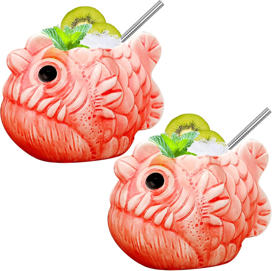 Tiki-Tassen-Set Fische Hawaii-Party-Becher aus Keramik für Cocktails hochwertiges Tassen-Set mit 2 T