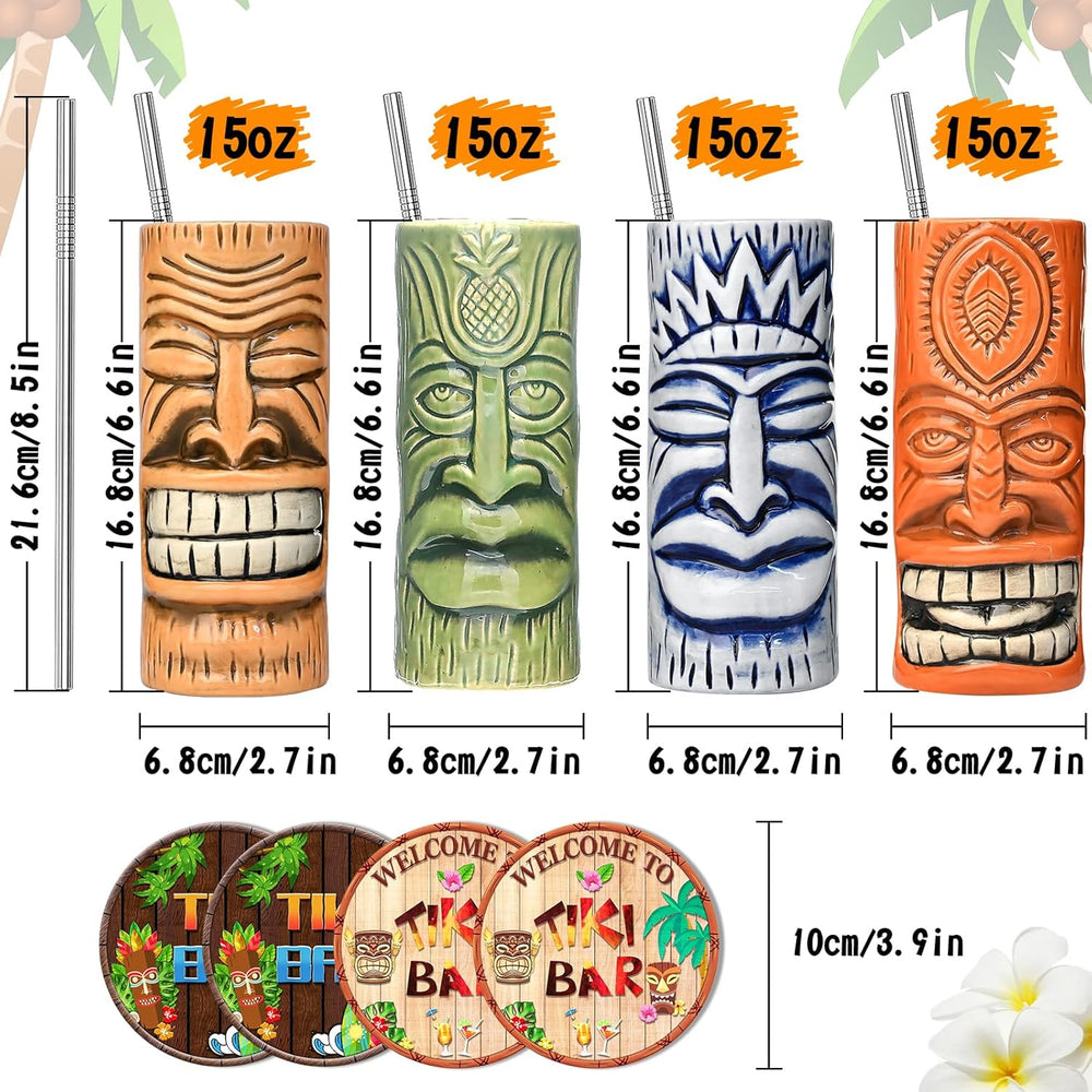 Tiki-Tassen-Set, Hawaii-Party-Becher aus Keramik, für Cocktails, hochwertiges Tassen-Set mit 4 Tasse