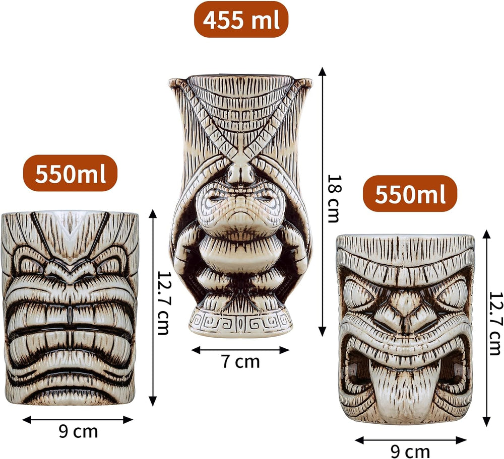 Tiki Becher Set Tiki Cocktail Gläser, Set Mit 3 Keramik-Tassen für Exotische Party,Tiki Bar, Keramik