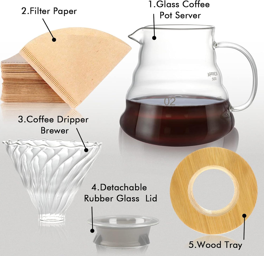 SuproBarware Kaffeebereiter-Set, manueller Glas-Kaffeefilter mit Tropfer, Glas-Kaffeefilter, Kegel u