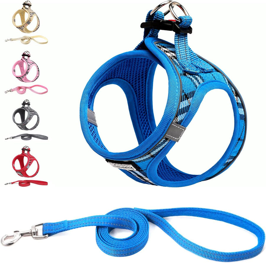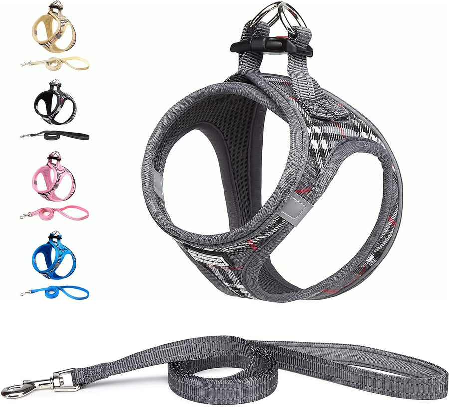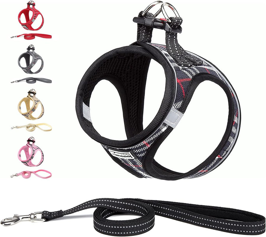 Suredoo Hundegeschirr Kleine Hunde mit Leine, Anti Zug Geschirr Reflektierend Atmungsaktiv Brustgesc