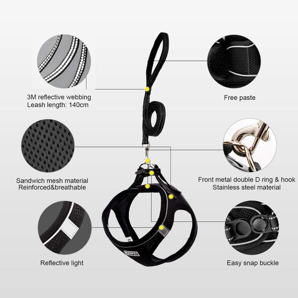 Hundegeschirr mit Leine, Anti Zug Geschirr Reflektierend Brustgeschirr für Kleine Hunde, Haustiere,