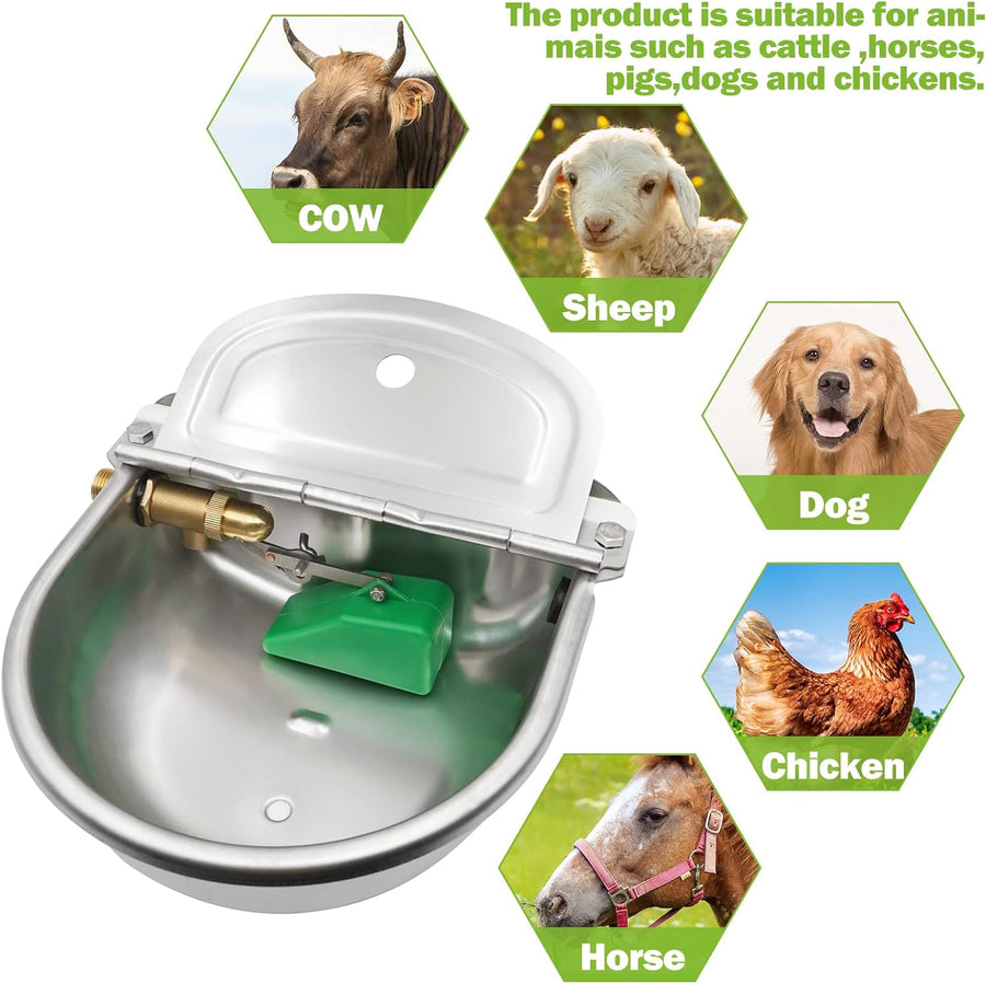 4 Liter Automatische Edelstahl Tränkeschalen für Rinder mit 2 Stück 1/2 Zoll Messing Schwimmerventil