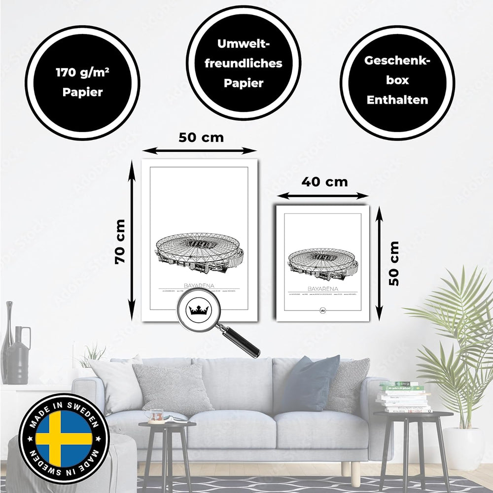 Sverigemotiv Fussballstadion-Wandkunstdruck – Fussballgeschenke für Jungen, Mädchen, Männer – Beste