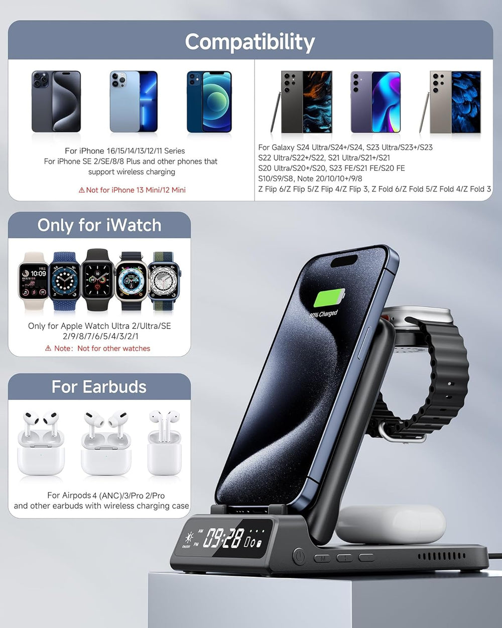 SwanScout Induktive Ladestation für Apple, 4 in 1 Faltbares Wireless Charger für i Phone 15/14/13/12
