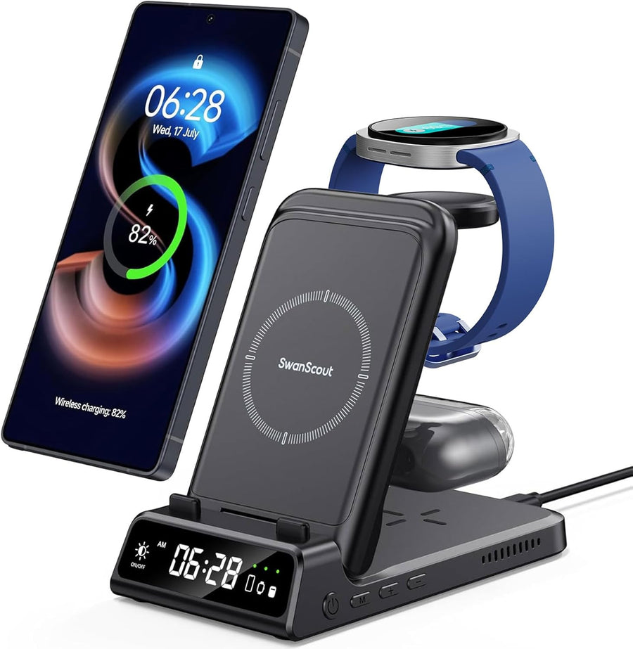SwanScout Induktive Ladestation für Samsung, Kabelloses Ladegerät für Samsung Galaxy S24 Ultra, 3 in