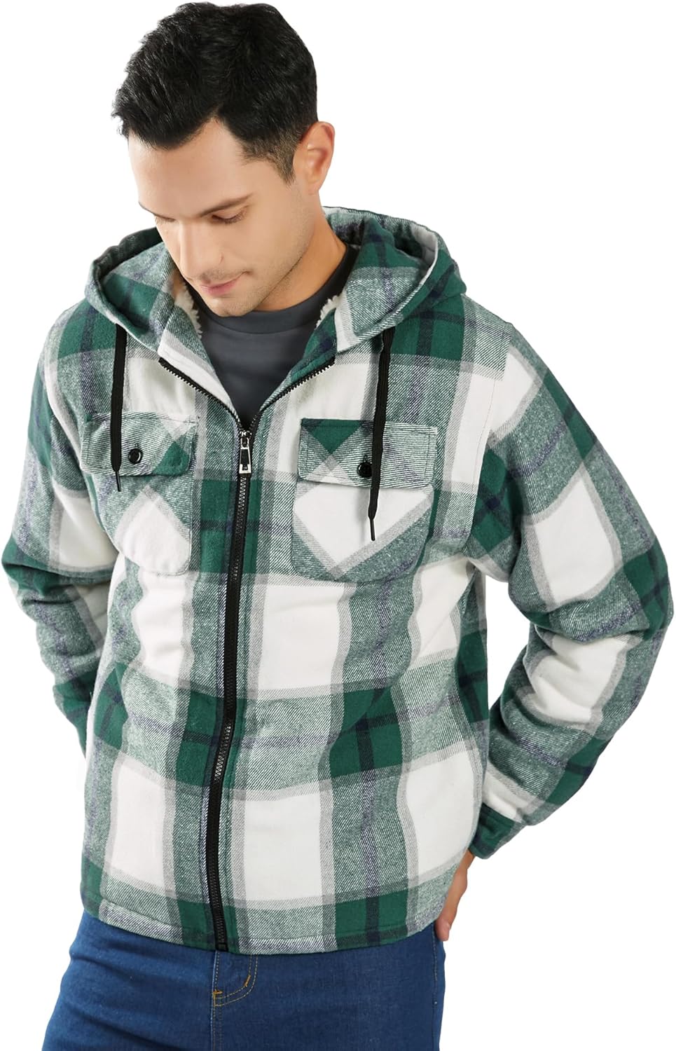 SwissWell Herren Hemdjacke Verdicken Kariertes mit Zipper Flanelljacke Plüschfutter Freizeit Gefütte