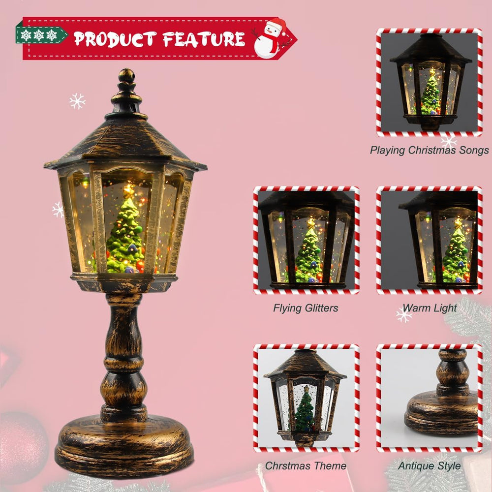 Weihnachts Schneelaterne mit Musik, Schneekugel Laterne Weihnachtskerze, Vintage Weihnachten Wasser