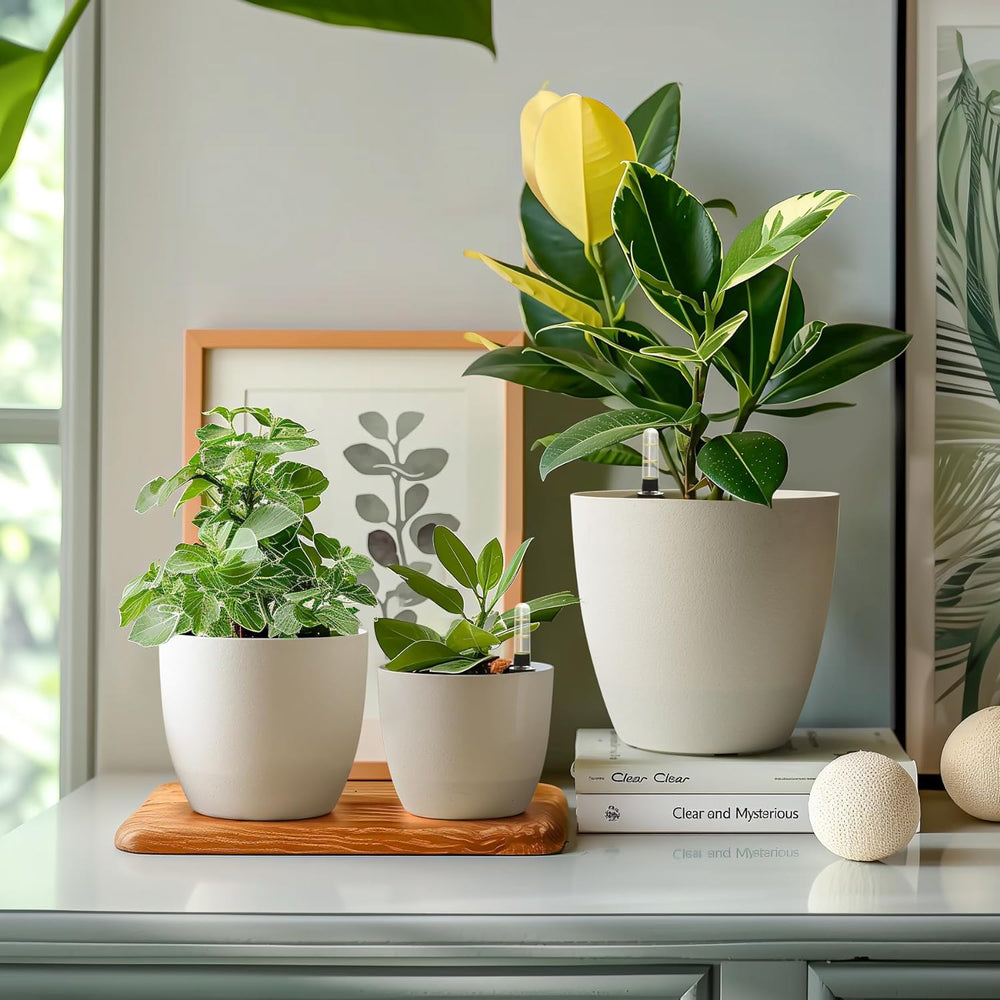 T4U 18cm Selbstwässernder Blumentopf mit Wasseranzeiger Weiss Blumentopf Set 4er-Set, Selbstbewässer