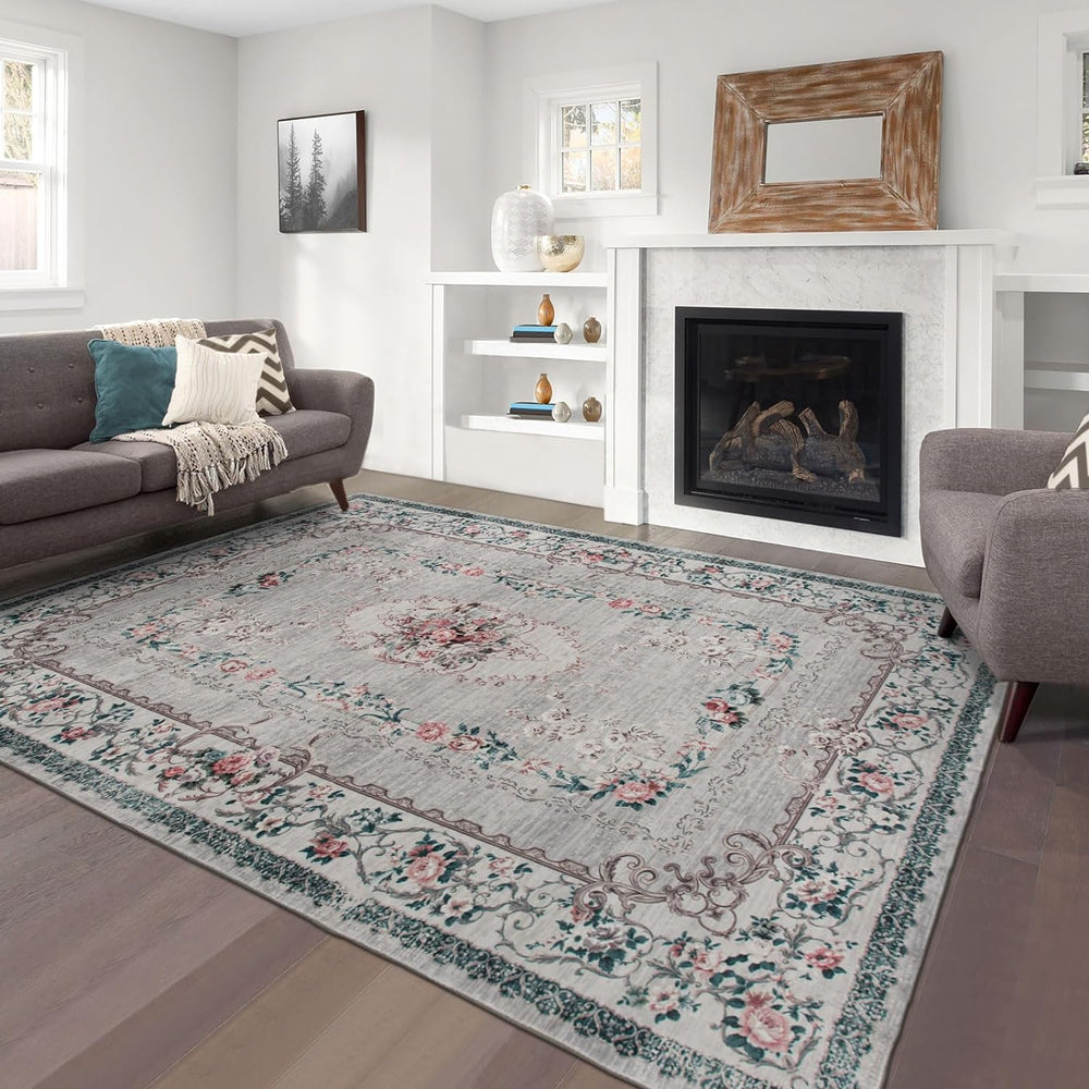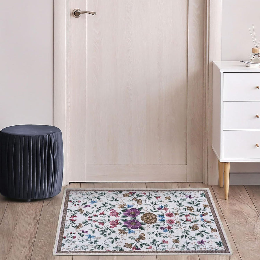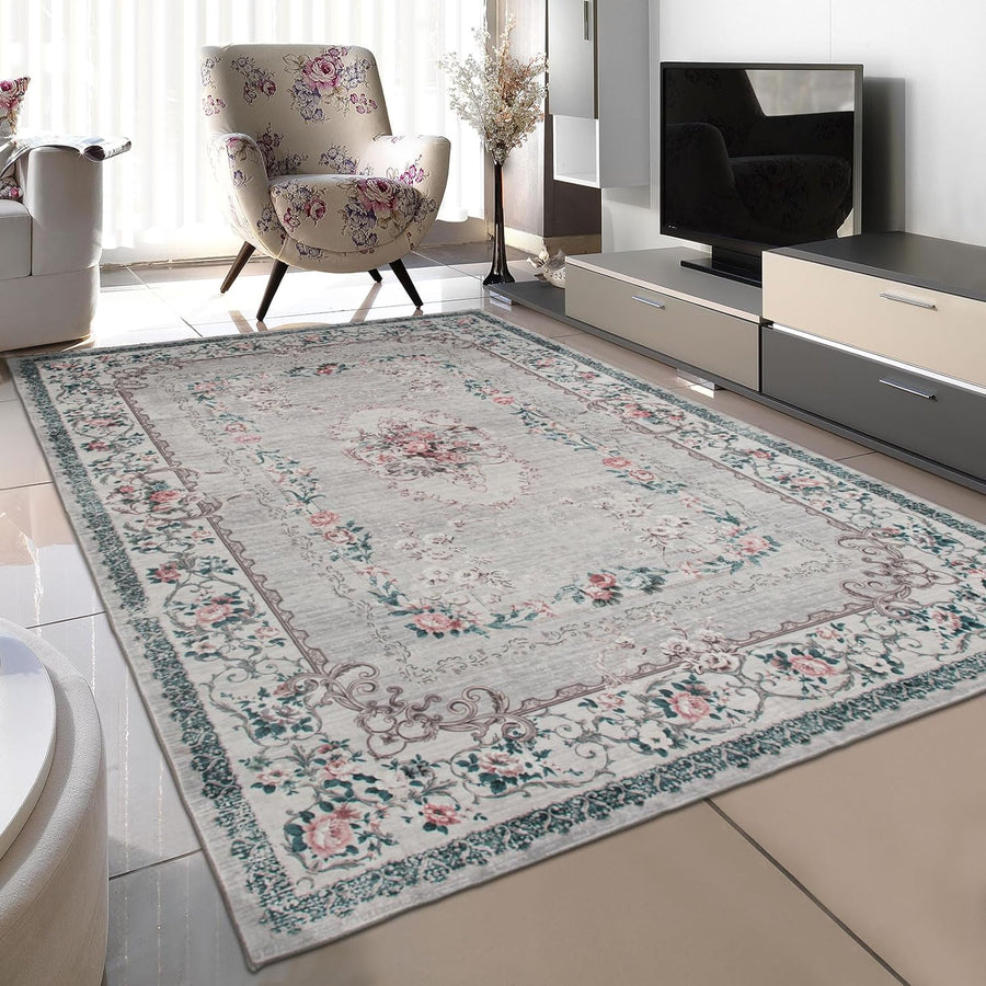 TALETA Mila Teppich Wohnzimmer, Blumenteppich Kurzflor,Wasserabweisender Orientalischer Küchenteppic