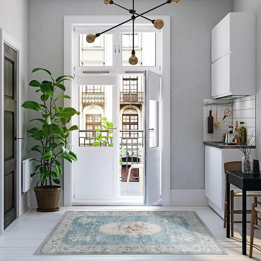 TALETA RINA Teppich Wohnzimmer,Waschbarer Orientteppich Faltbar, Vintage Küchenteppich für Esszimmer