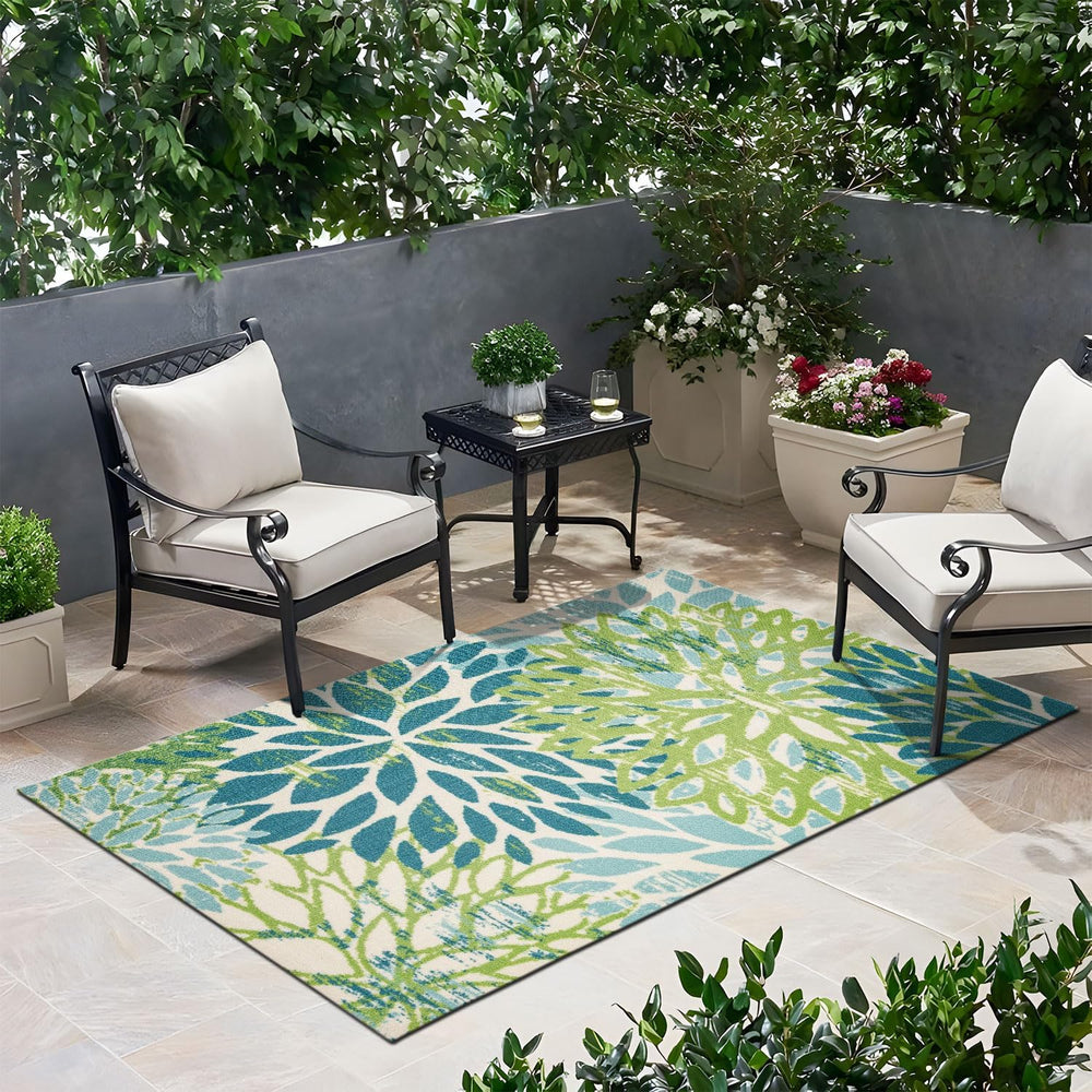 TALETA Kleiner Teppich Outdoor, Teppich für Balkon, Outdoor Teppich grün, Outdoorteppich für Terrass
