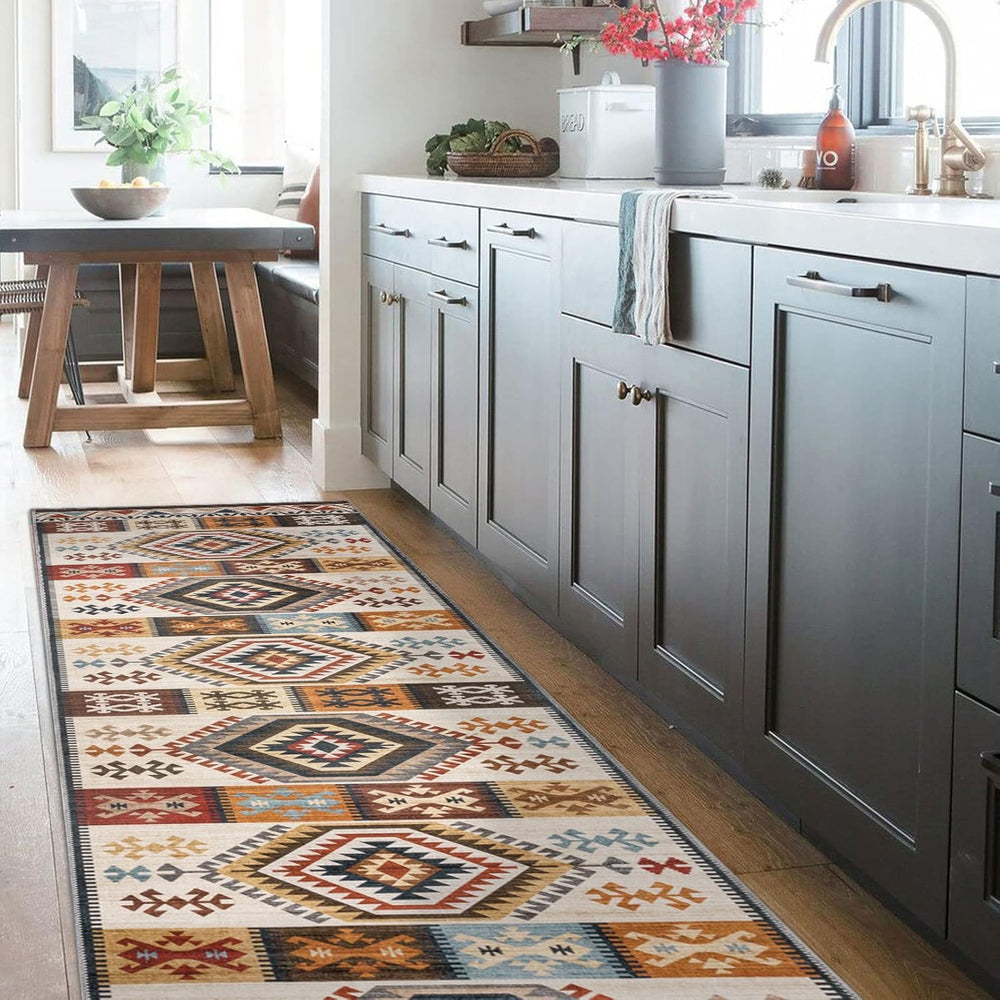 TALETA Küchenläufer waschbar rutschfest, bunter Teppichläufer Flur, Küchenteppich, Vintage Bettvorle