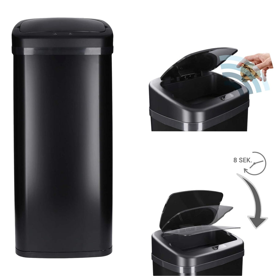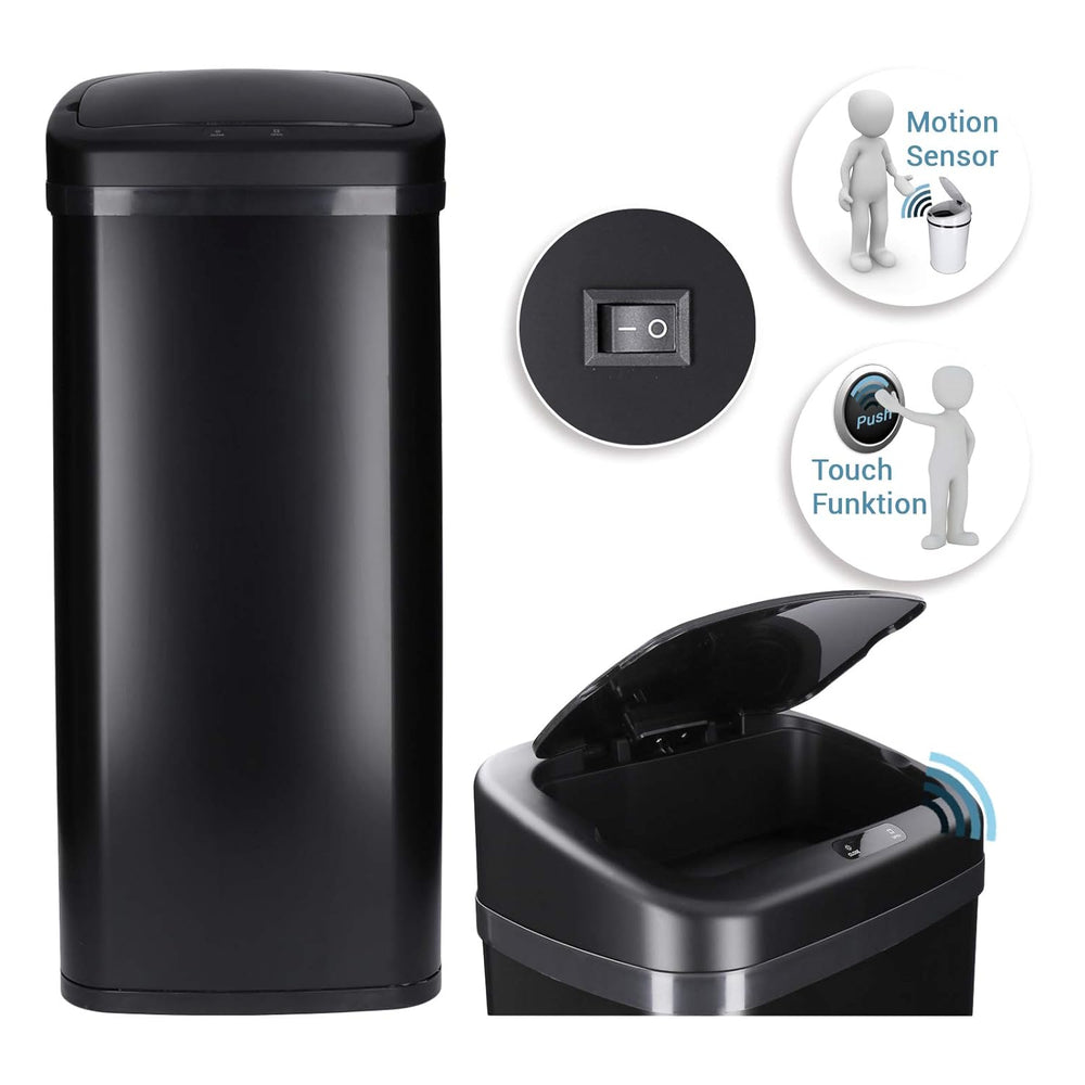 TP Sensor Müll-Eimer, Abfall-Behälter aus Edelstahl, automatischer Deckel, eckig, ca. 50 Liter, geru