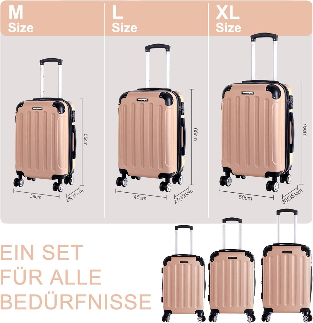 3er Kofferset - Robuste ABS- Hartschalenkoffer, TSA-Zahlenschloss, erweiterbare Kapazität - in M, L,