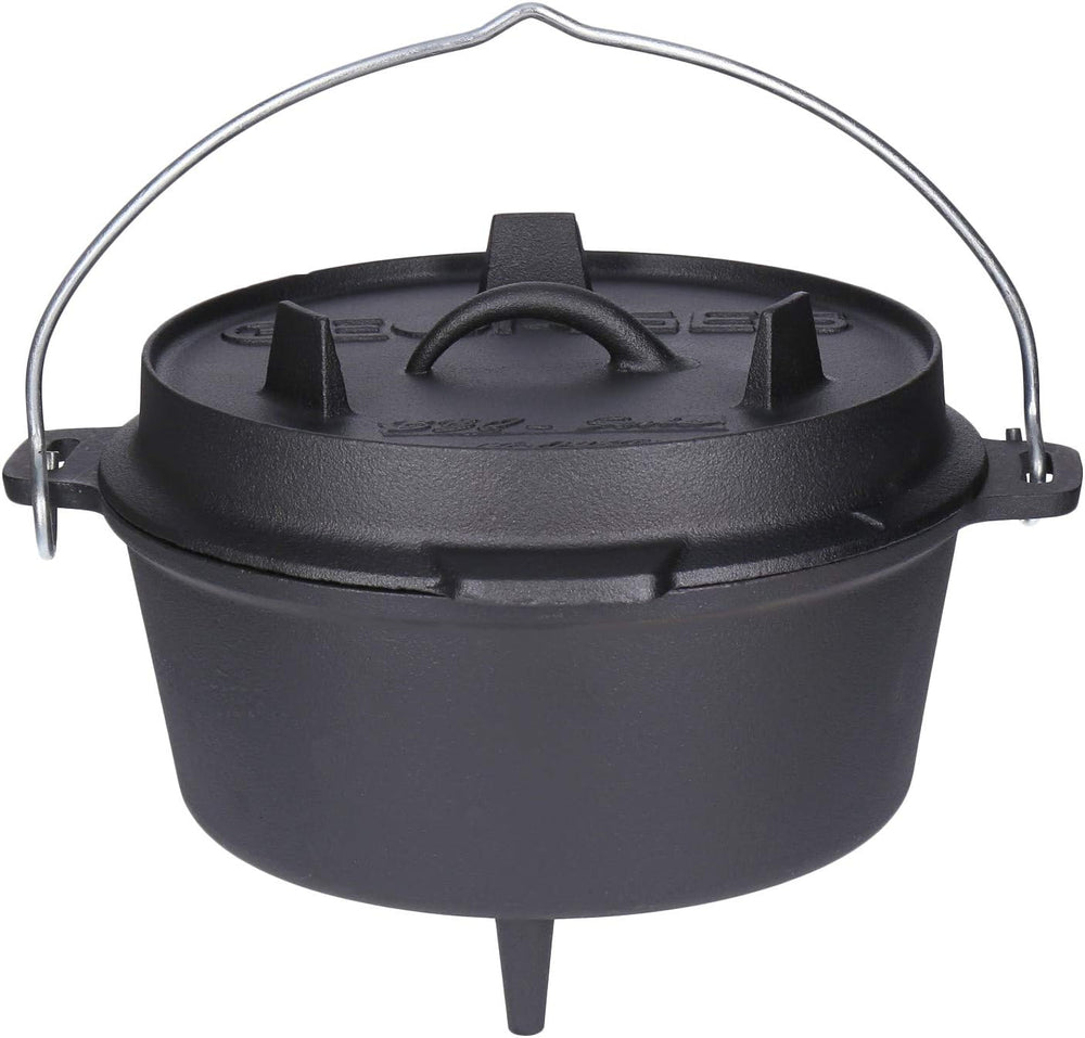 TALK-POINT TP Premium BBQ Set, Dutch Oven 9-teilig, Feuer-Topf, Bräter, Brat-Pfanne aus Gusseisen, K