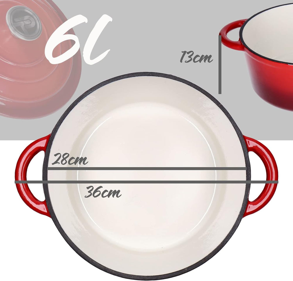 Kochtopf, Kasserole Fleischtopf aus emailliertem Gusseisen mit Deckel 6L, Ø28cm Edelstahl-Knauf, für