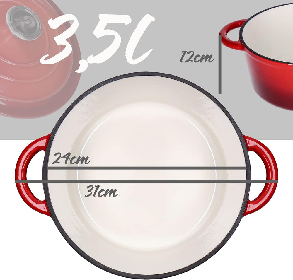 Kochtopf, Kasserole Fleischtopf aus emailliertem Gusseisen mit Deckel 3,5L, Ø24cm Edelstahl-Knauf, f