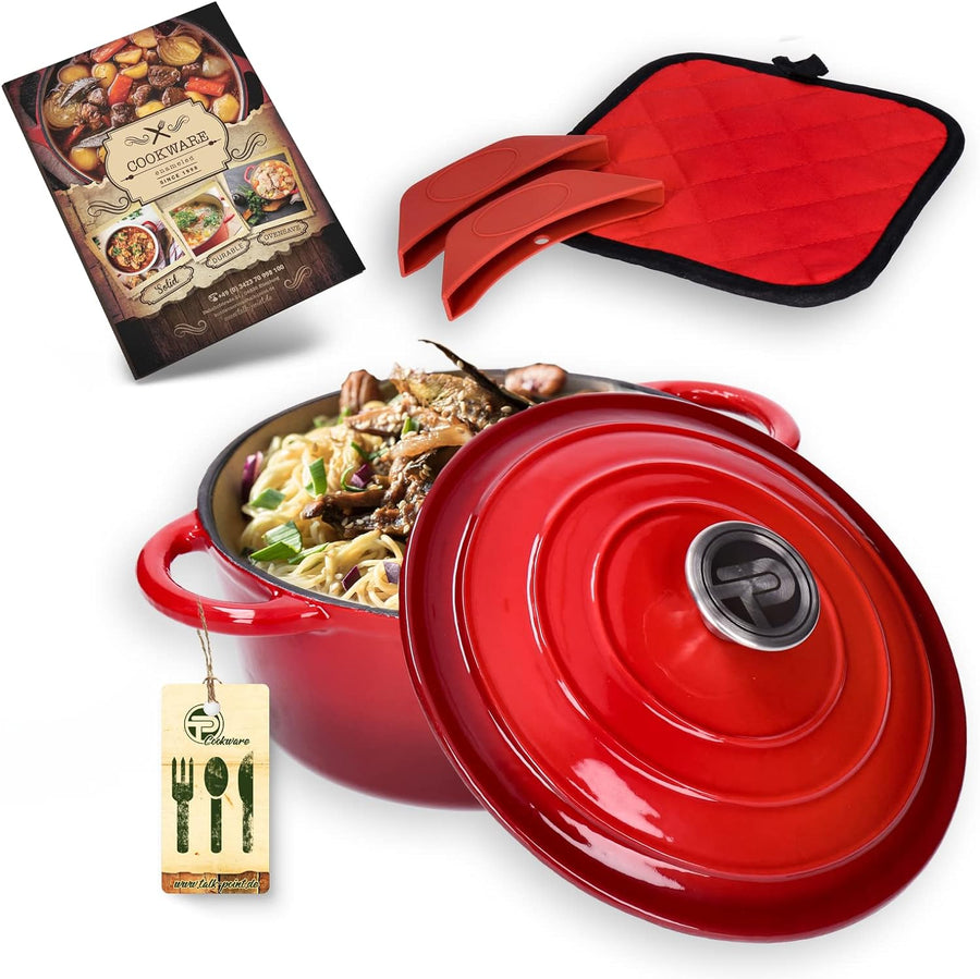 Kochtopf, Kasserole Fleischtopf aus emailliertem Gusseisen mit Deckel 4,5L, Ø26cm Edelstahl-Knauf, f