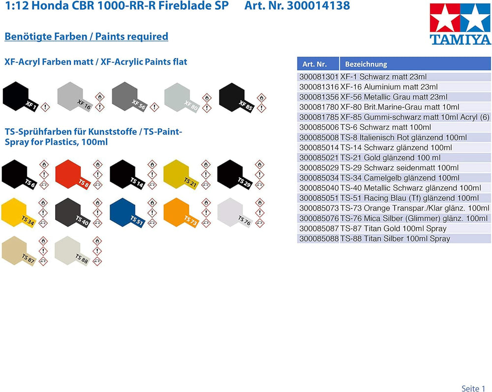 TAMIYA 14138 300014138 1:12 Honda CBR 1000-RR-R Fireblade SP, originalgetreue Nachbildung, Modellbau