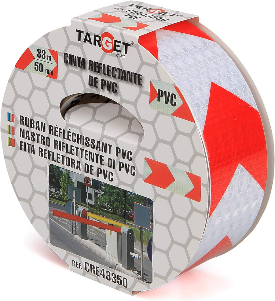TARGET CRE43350 - Reflektierendes Klebeband - Rot und Weiss - 33 Meter x 50 Millimeter - Beschilderu