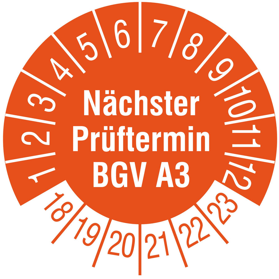 TE-Office 500 Stück Prüfaufkleber Prüfplaketten 18-23 Nächster Prüftermin BGV A3 orange Rolle 1-bahn