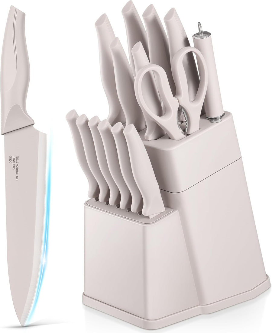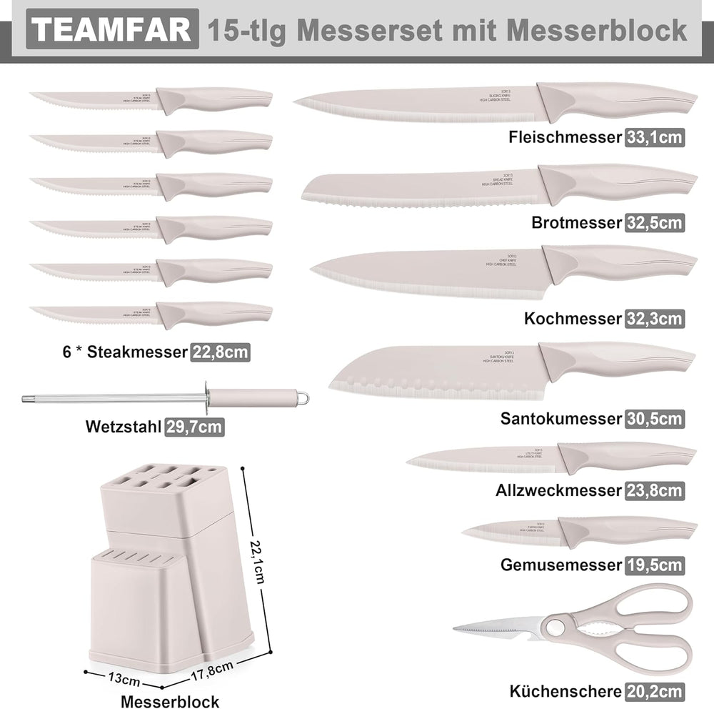 TEAMFAR Messerblock mit Messerset, 15-teilig Edelstahl küchenmesser Set mit Wetzstahl, Messerblock m