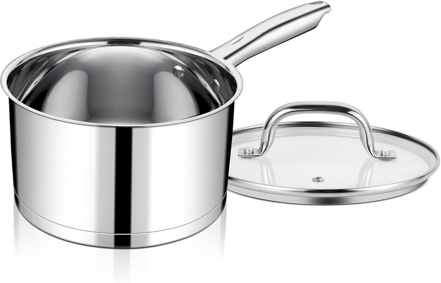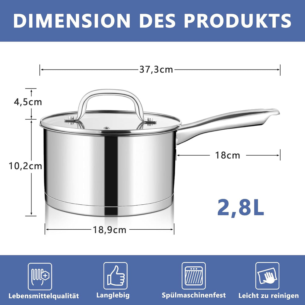 TEAMFAR Stielkasserolle, Edelstahl Milchtopf Kasserolle Induktion mit 3-Lagen Boden für alle Herdart