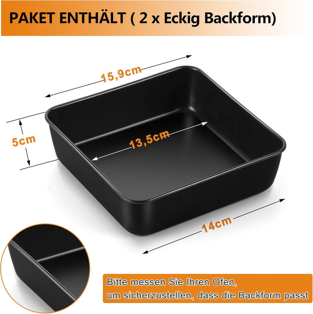 TEAMFAR Quadratisch Auflaufform 2er Set, Edelstahl Brownie Kuchenform Eckig mit Antihaftbeschichtet,