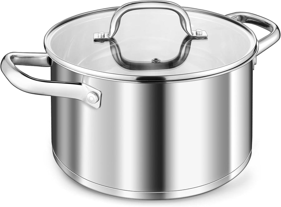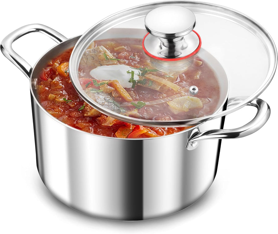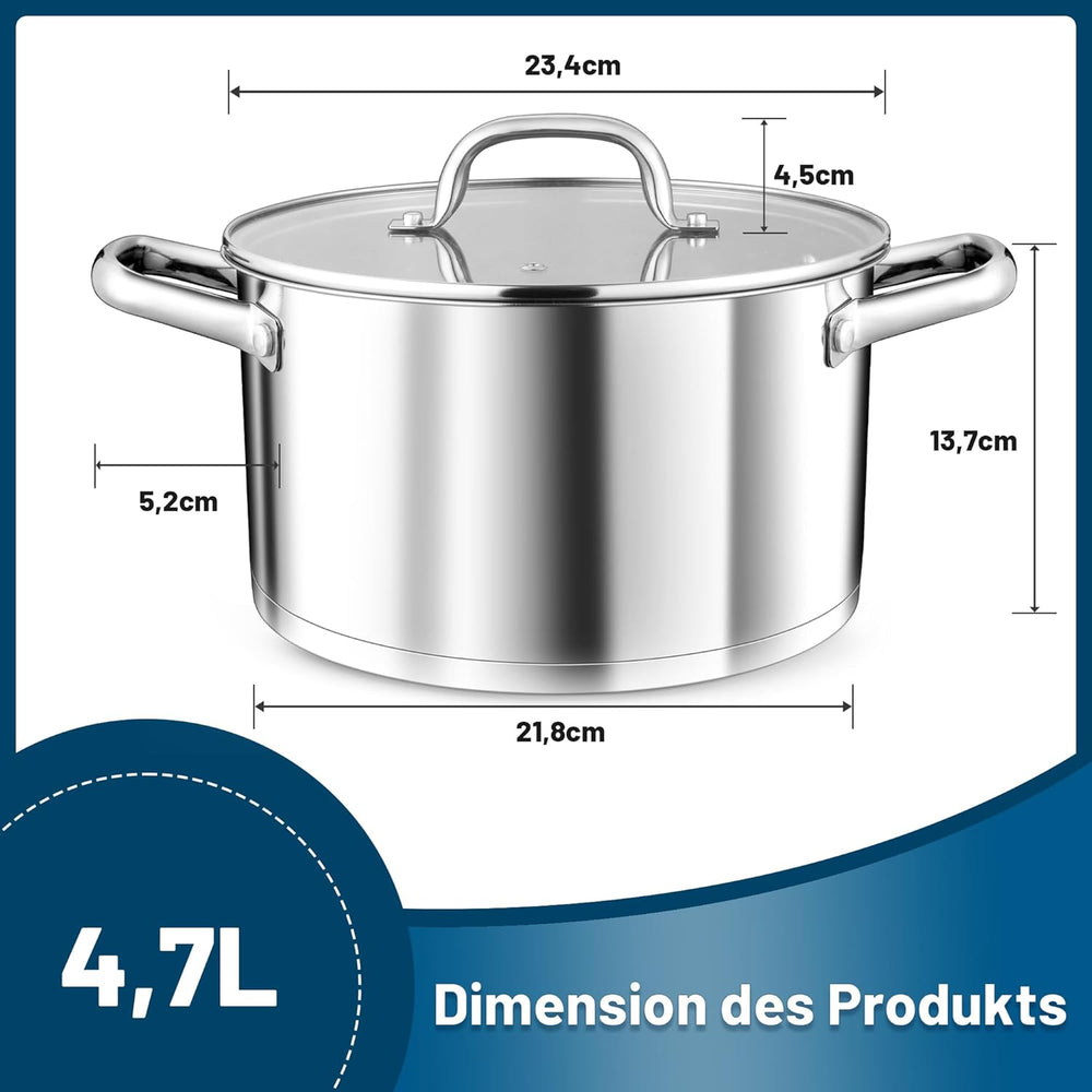 TEAMFAR Kochtopf, 4,7L Edeastahl Topf Suppentopf Induktion mit Glasdeckel, aus 3-Lagen Boden für all
