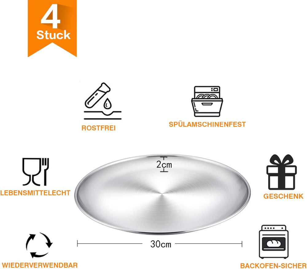 TEAMFAR Pizzablech, Rund Pizzaform Pizzapfannen 4er-Set aus Edelstahl, ∅ 29 cm Pizza Backblech zum B
