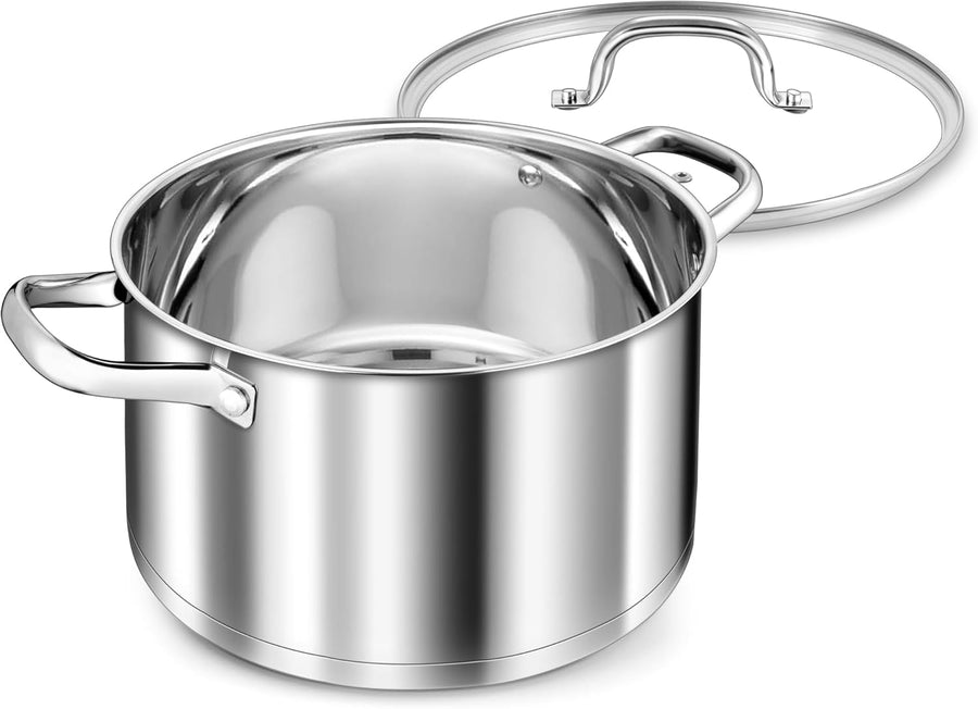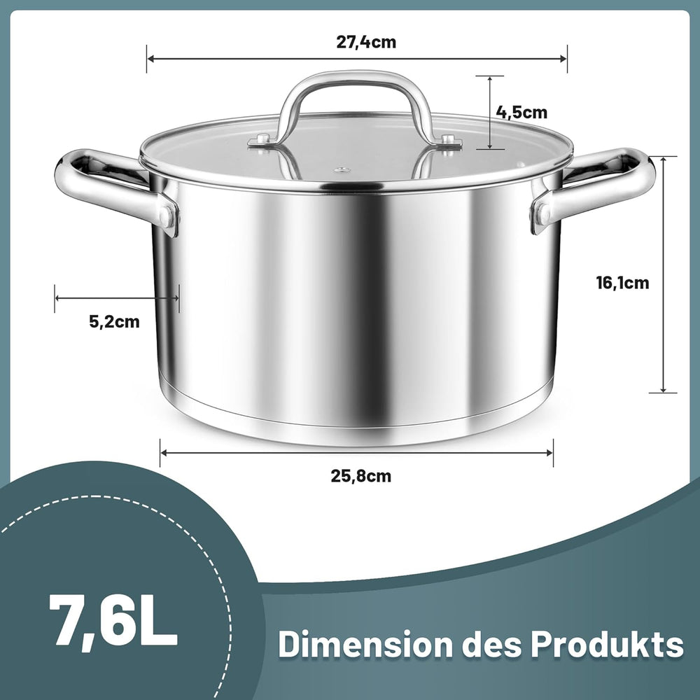 TEAMFAR Kochtopf Gross, 7,6 Liter Edeastahl Topf Suppentopf Induktion, Glasdeckel, 3-Lagen Boden für