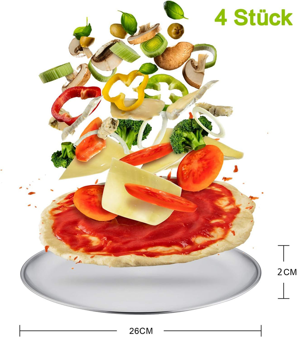 TEAMFAR Pizzablech 4er-Set, Edelstahl Rund Pizzaform Pizza Backblech zum Backen im Ofen, ∅ 26 cm, Ge