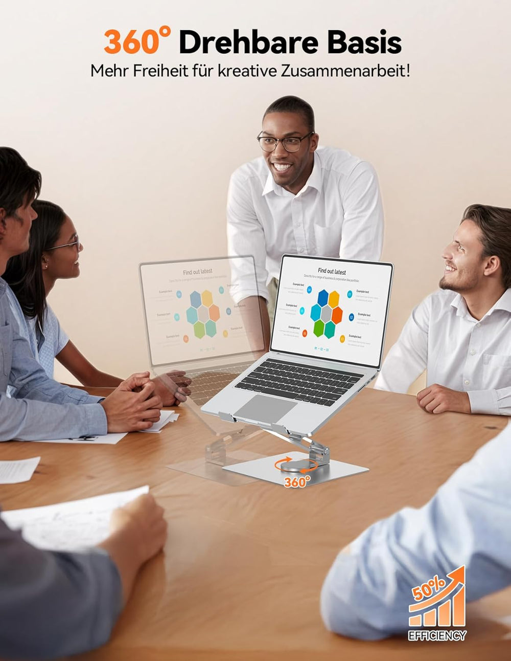 TECKNET Laptop Ständer mit 360 Drehbarer Basis, Laptopständer Höhenverstellbar, Faltbarer Laptop Sta