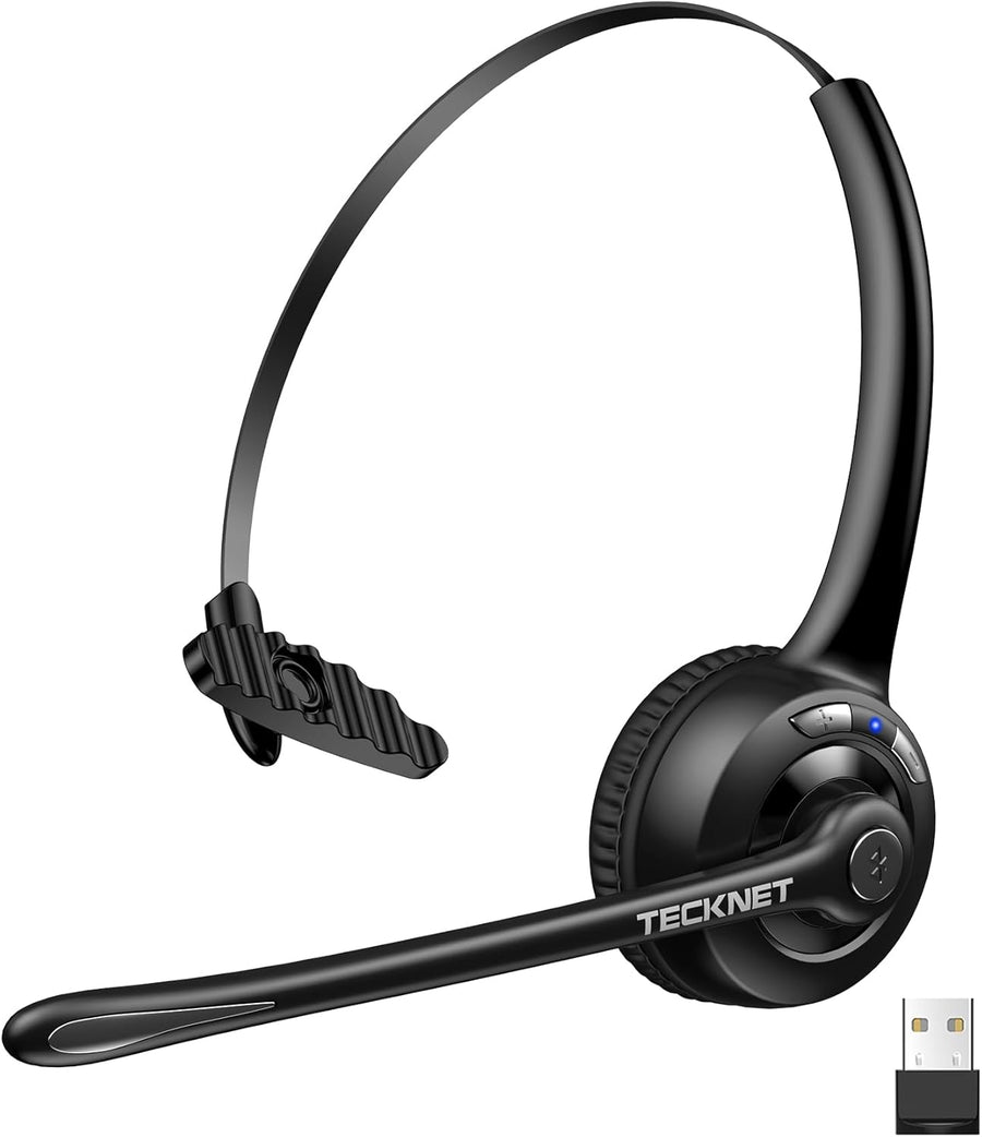 TECKNET Bluetooth Headset mit Mikrofon & USB Dongle, kabelloses PC Headset, Rauschunterdrückung und