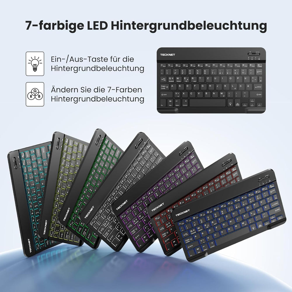 TECKNET Deutsche Bluetooth Tastatur für Tablet/iPad Mini/Pro/Air/10.2/10.9/iPhone/Android/Windows, i