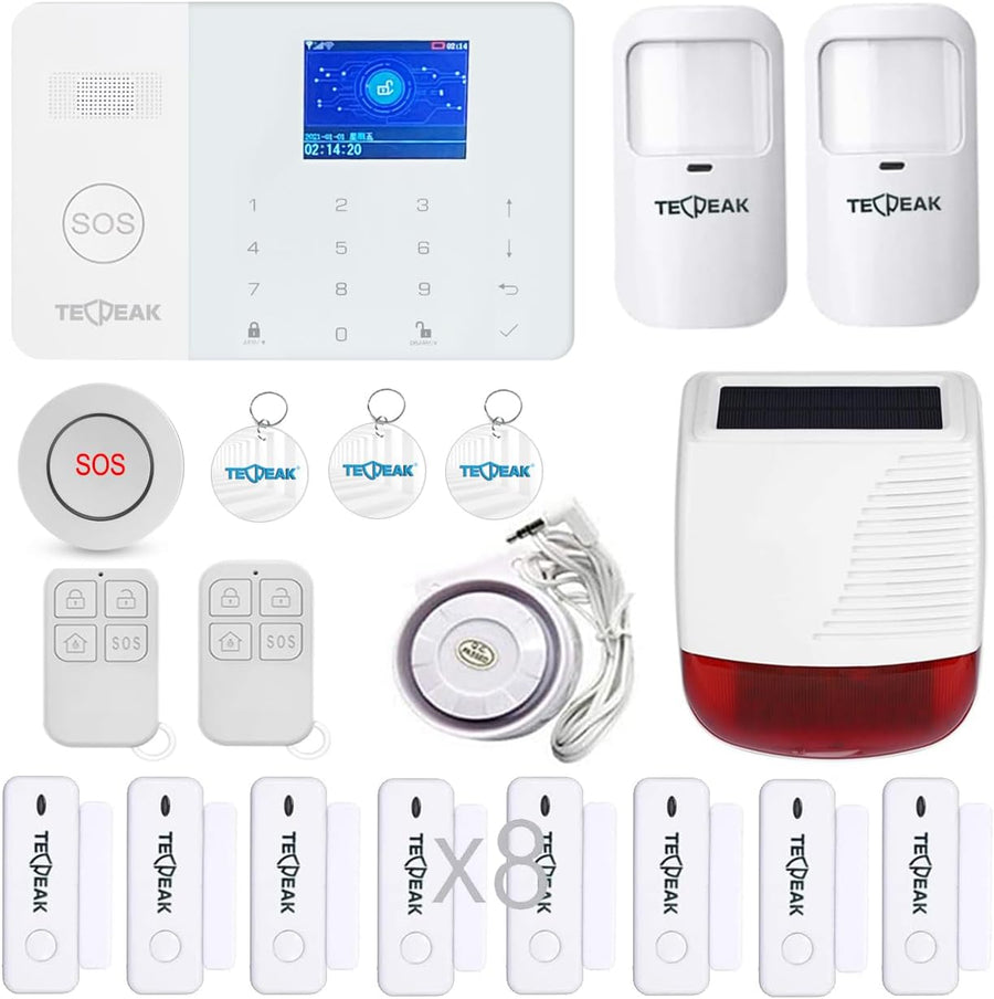TECPEAK Kabelloses Alarmanlagensystem für Zuhause, WLAN/GSM-Alarm-Set mit Sicherheitssirene, fernges