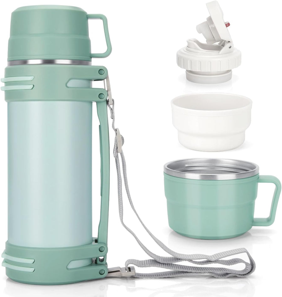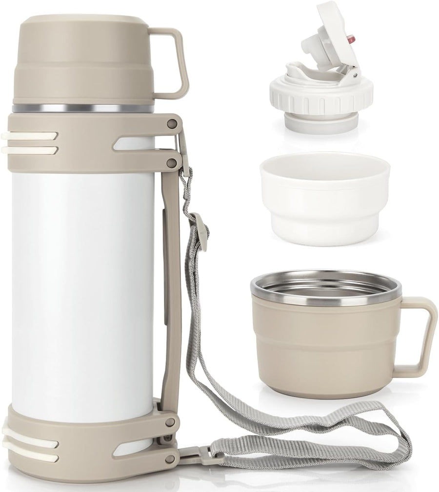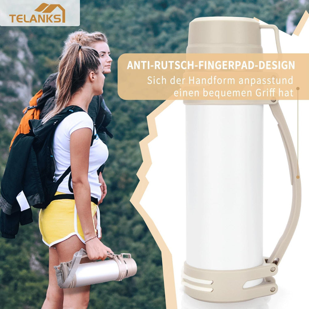 Thermosflasche 1,2L, Thermoskanne mit 2 Becher, Doppelwand aus Edelstahl Isolierflasche, Auslaufsich
