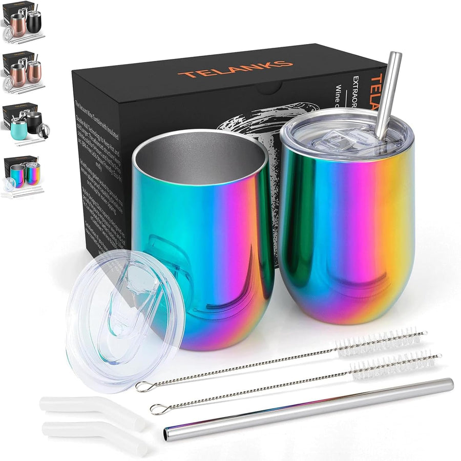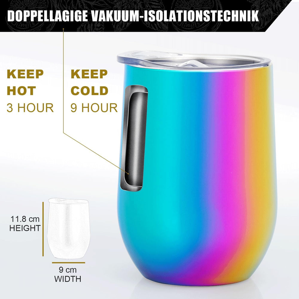 TELANKS Weinbecher,2 Stück Weinbecher to go aus Edelstahl,12oz Weinbecher glas mit Deckel und Strohh