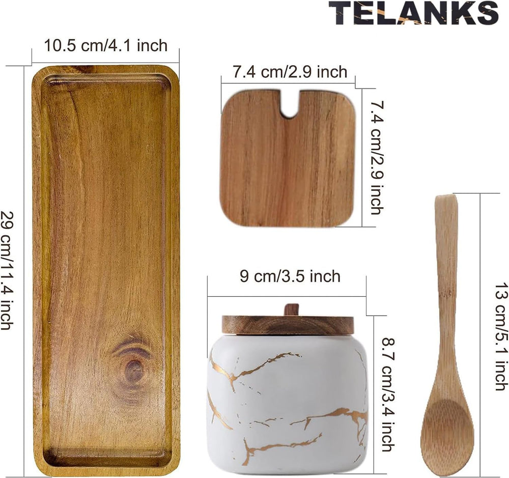 TELANKS Zuckerdose 3er Set mit Deckel und Löffel, Gewürzbehälter Keramik, Salzdose mit Deckel, Salzt
