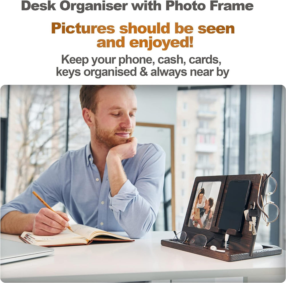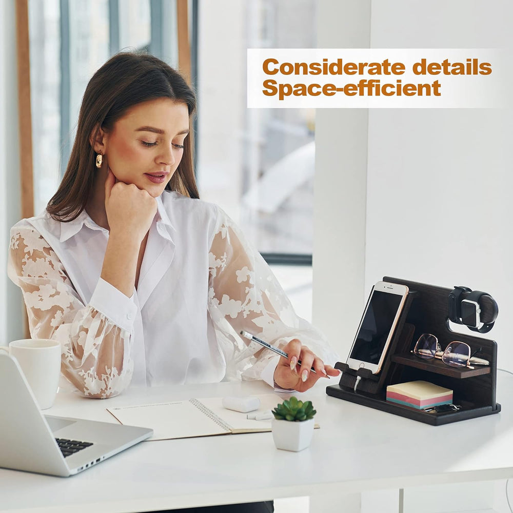 TESLYAR Männer Docking Station & Schreibtisch Organizer Holz mit Handyständer Schwarz für Büro Aufbe