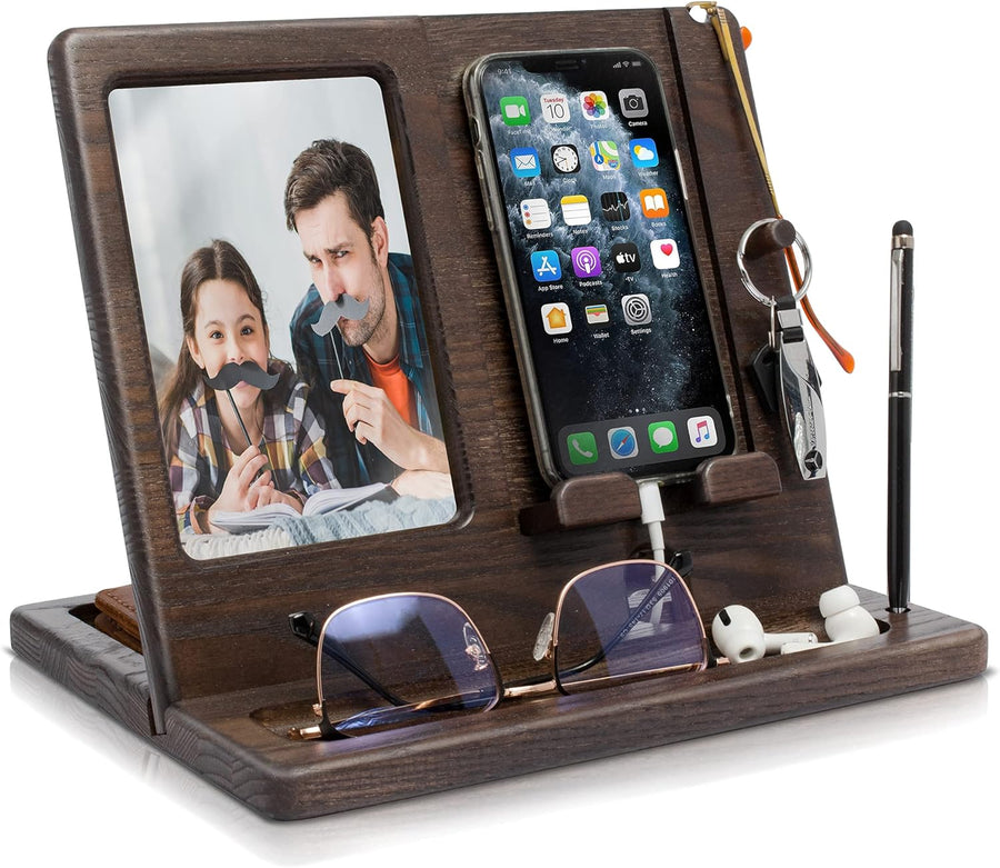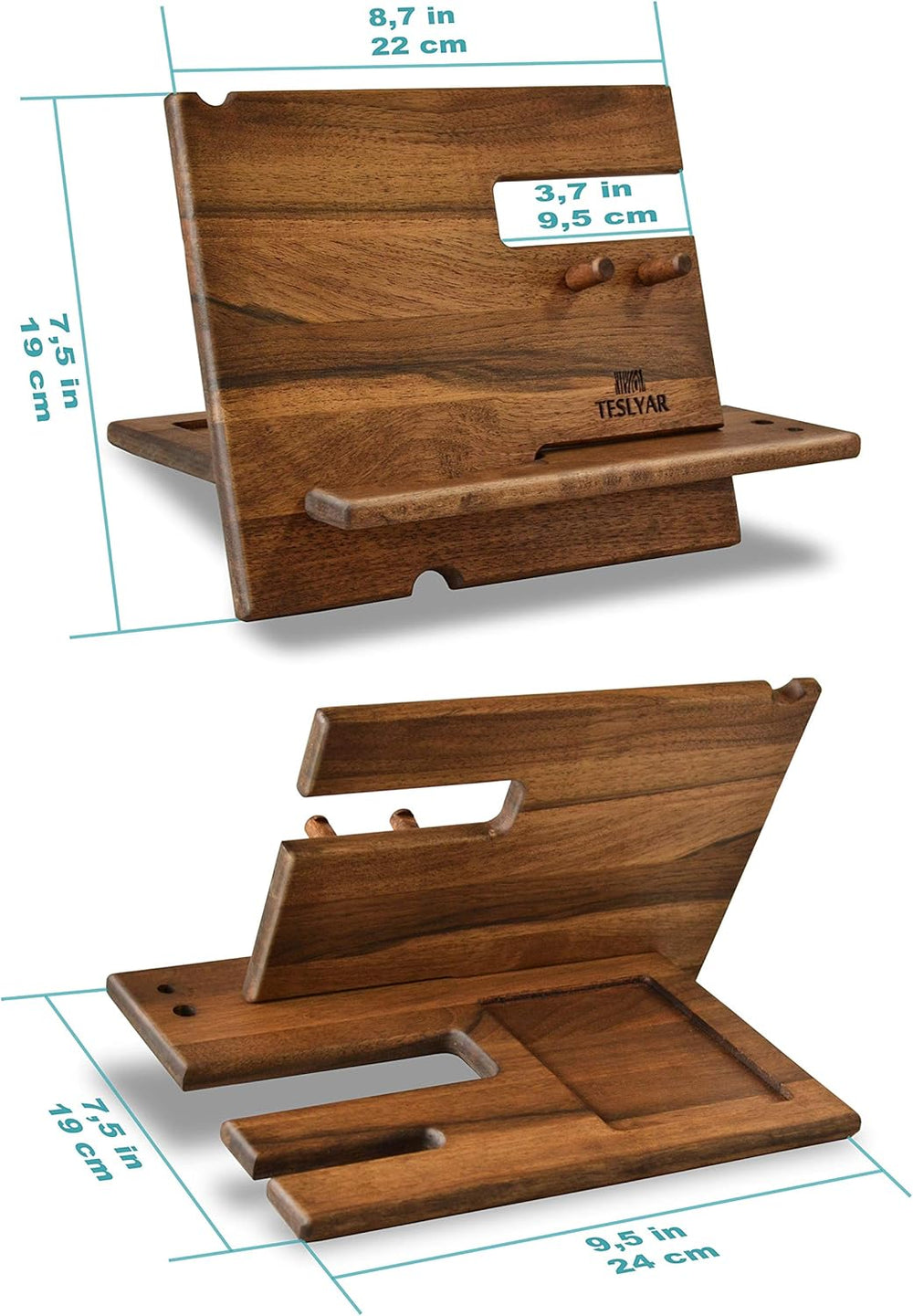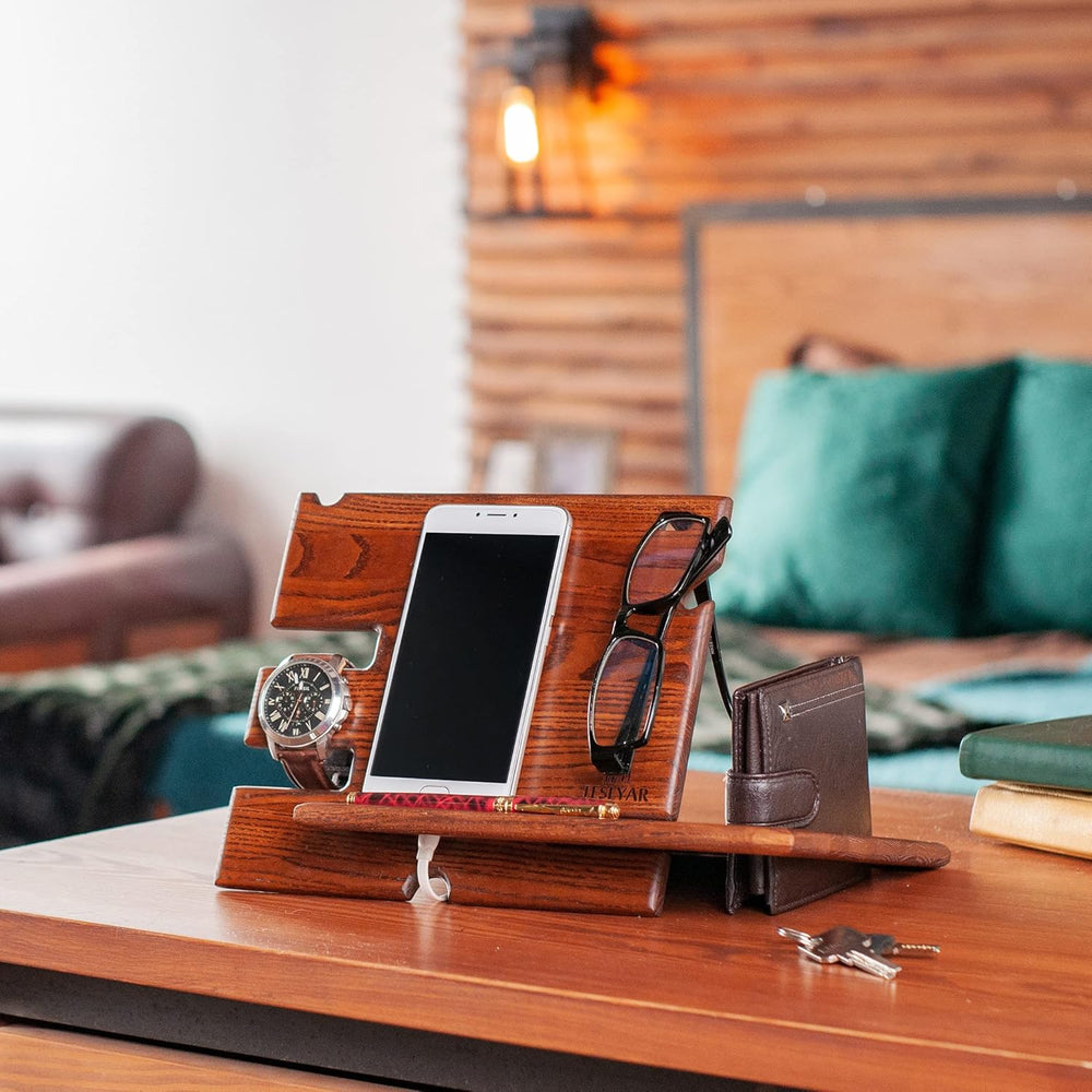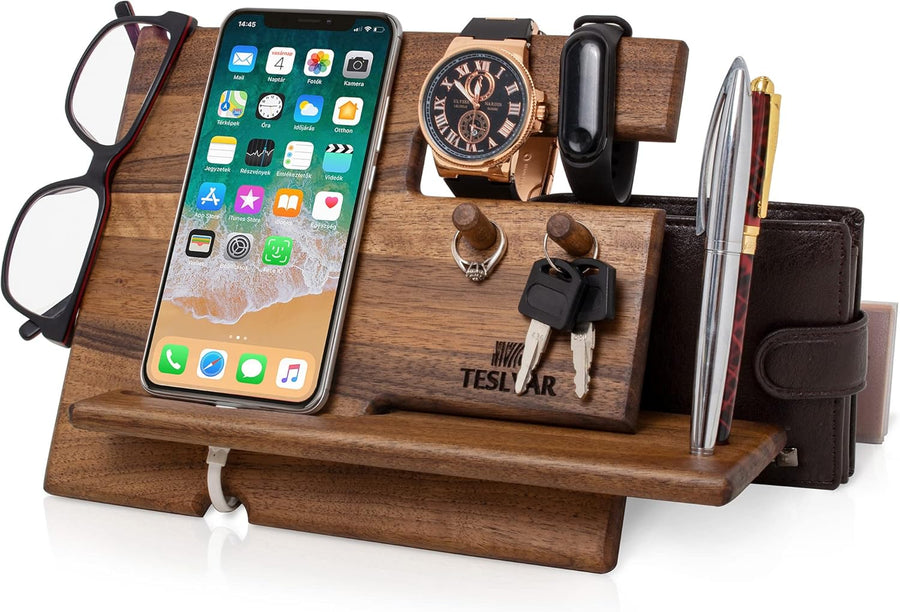 TESLYAR Holz-Telefon-Dockingstation für Männer – Schreibtisch- oder Nachttisch-Organizer – Geburtsta
