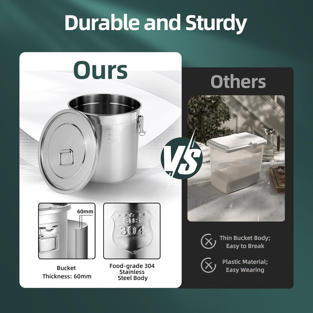 Edelstahl Getreidebehälter, 12L Luftdichter Kanister Lebensmitteln mit Deckel, Küche Edelstahl Eimer