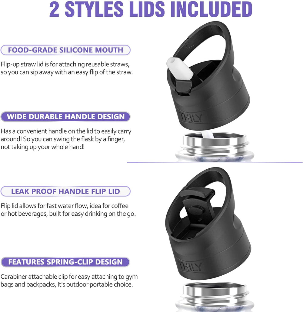 Thily Thermobecher aus Edelstahl, vakuumisoliert, 780ml, Kaffeetasse mit 2 Deckeln und Strohhalmen,